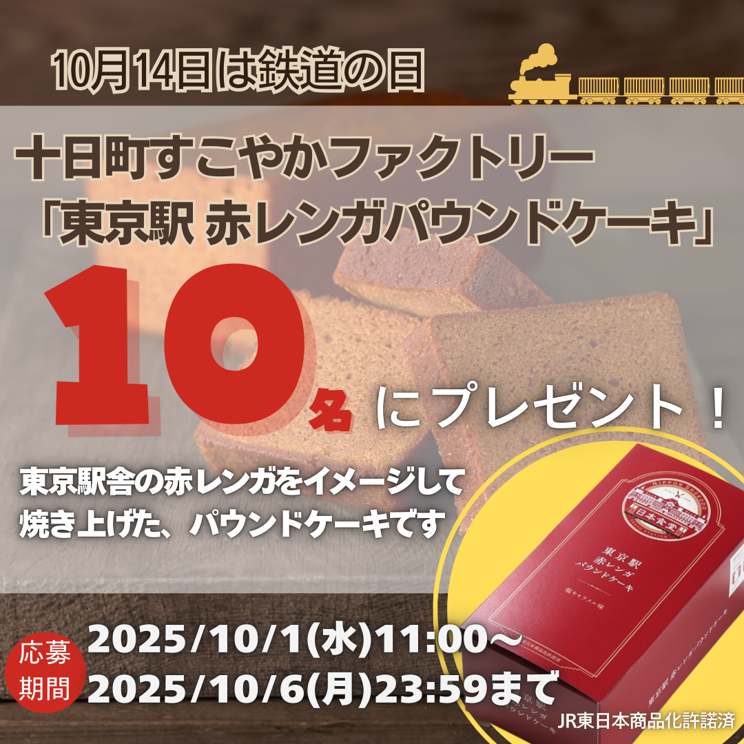 十日町すこやかファクトリー「東京駅 赤レンガパウンドケーキ」が10名に当たる