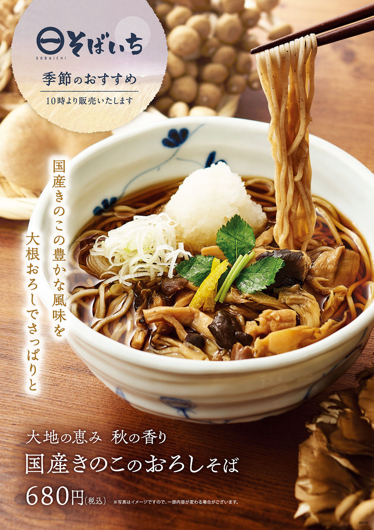~大地の恵み、秋の香り~国産きのこのおろしそば 680円